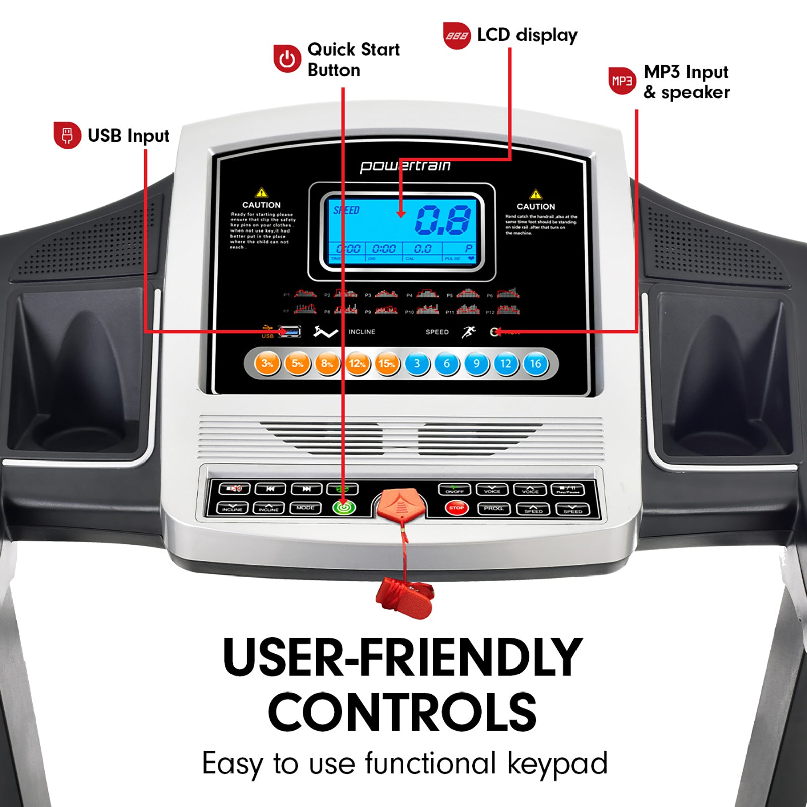 - Power incline: 0-15%